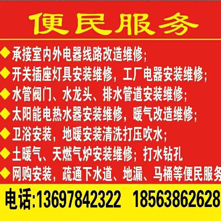 莱州本地专业水电暖安装维修,给水排水管道安装维修,太阳能电热水器安装维修,电热水器清洗更换镁棒,壁挂太阳能安装加介质,净水机安装维修,安装前置过滤器,卫浴安装,座便器安装维修,网购安装,打水钻孔。