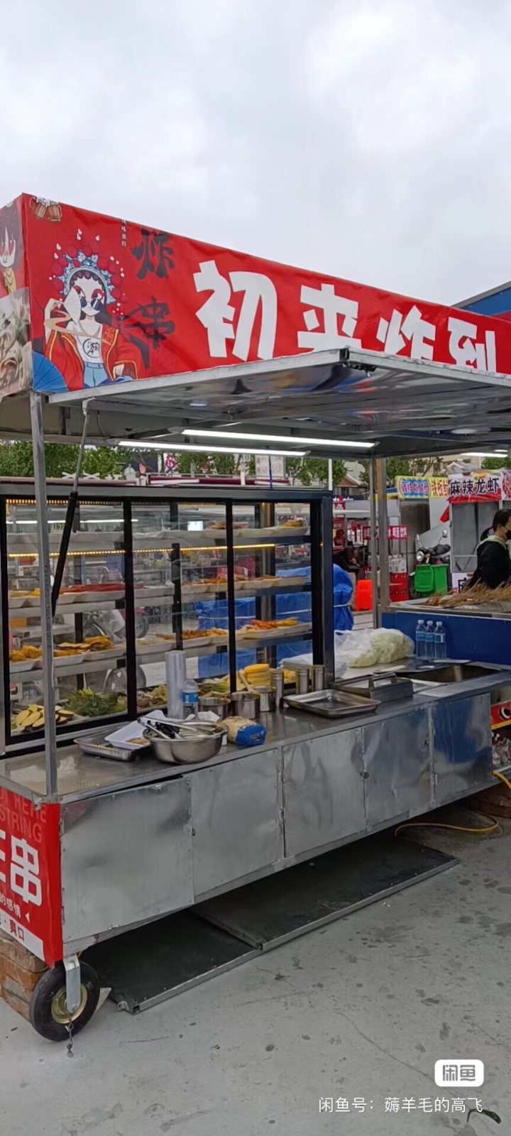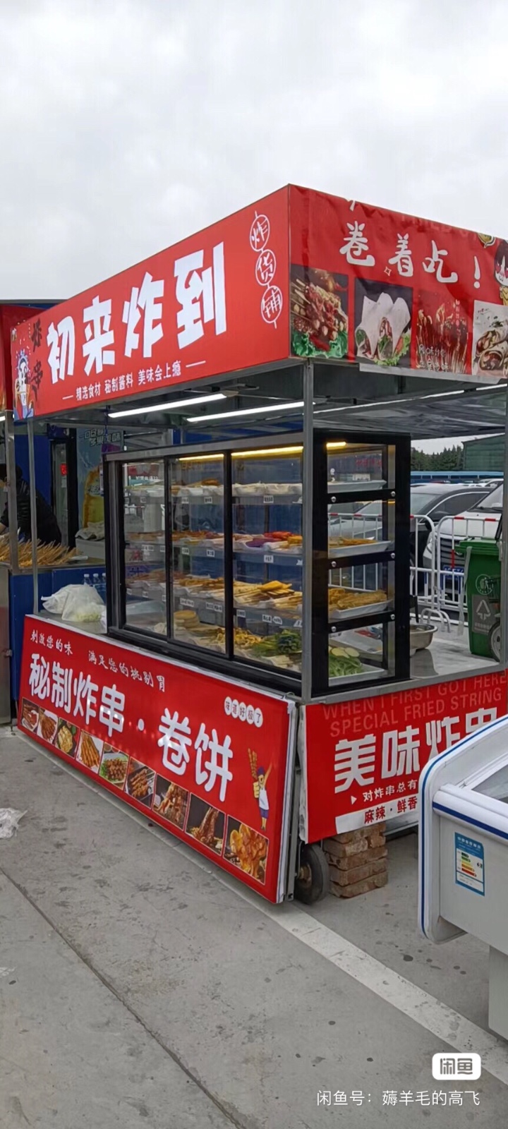 出售四轮炸串小吃车带保鲜柜九成新